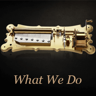 Wir konzentrieren uns ausschließlich auf den Bereich der mechanischen Spieluhren und sind seit mehr als 20 Jahren tätig. Wir liefern alle Modelle von Musikwerken, Zugseil-Spieluhrwerken, Handkurbel-Spieluhrmechanismen und Aufzieh-Spieluhrwerken sowie Tausende von Melodien zur Auswahl.