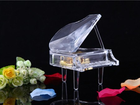 2) Componentes: Caja transparente de acrílico, mecanismo musical de cuerda.