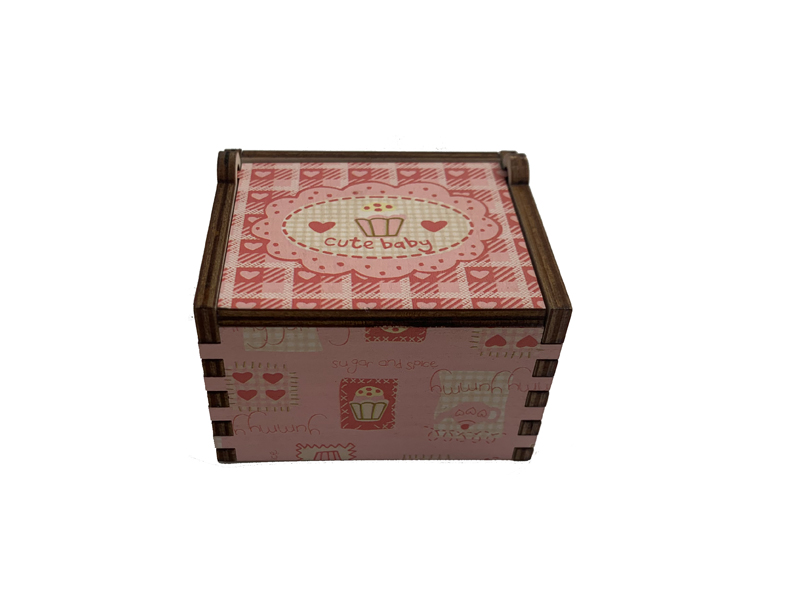 Pink Lovely Wooden Carved Music Box,A variety of vivid desserts, cakes are printed on the outside of the box.