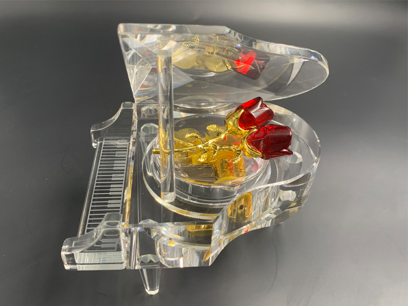 Luxury Handmade Clear Crystal Piano Music Box with Rose Decoration
