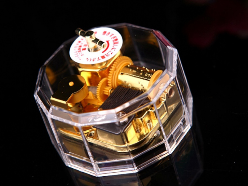 10) Servicio personalizado: caja de música acrílica, color del mecanismo musical, melodía, pegatina con su propia marca.