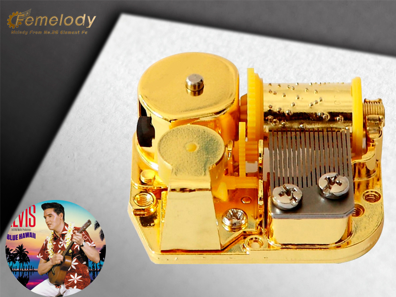 Brand Name: Femelody Category: Movie Songs Model Number: FEBH18 Available Melody: Blue Hawaii Material: Zinc-alloy Customized Music: Available Application: 18 note music movement Price: $1~399/pcs Unit Size: 50.5*44.5*27mm Feature: Wind up Unit Weight: 50g Lead Time: 3 weeks after we received the payment Play Power: Mainspring Sample Order: Available Packaging: 25pcs/base,400pcs/carton Place of Origin: Ningbo,China MOQ: 400pcs/tune Departure Port: Ningbo,Shanghai Music Duration: One tune of about 13~20 seconds,3 minutes power reserve Payment: T/T 100% payment in advance,Paypal