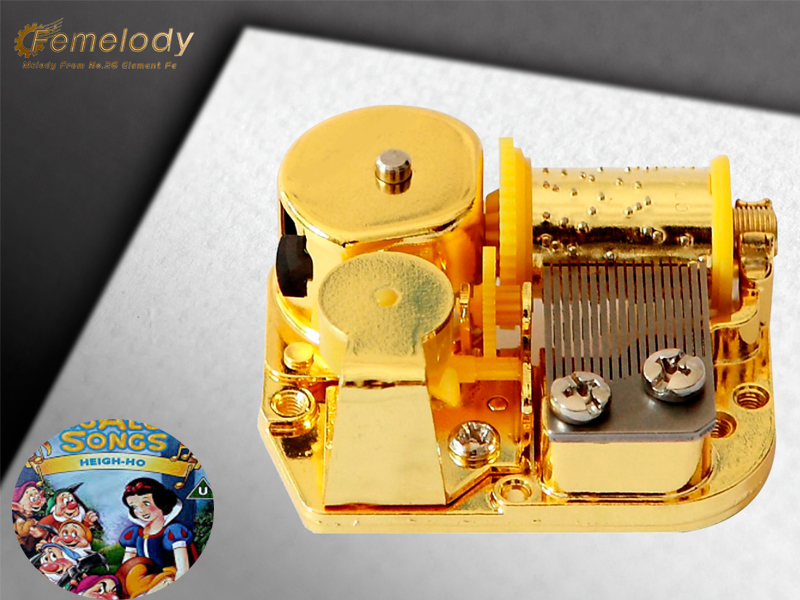 Brand Name: Femelody Category: Children Tunes Model Number: FEHH18 Available Melody: Heigh-ho Material: Zinc-alloy Customized Music: Available Application: 18 note music movement Price: $1~399/pcs Unit Size: 50.5*44.5*27mm Feature: Wind up Unit Weight: 50g Lead Time: 3 weeks after we received the payment Play Power: Mainspring Sample Order: Available Packaging: 25pcs/base,400pcs/carton Place of Origin: Ningbo,China MOQ: 400pcs/tune Departure Port: Ningbo,Shanghai Music Duration: One tune of about 13~20 seconds,3 minutes power reserve Payment: T/T 100% payment in advance,Paypal