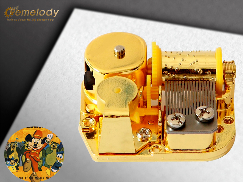 Brand Name: Femelody Category: Anime Cartoon Songs Model Number: FEMMM18 Available Melody: Mickey Mouse March Material: Zinc-alloy Customized Music: Available Application: 18 note music movement Price: $1~399/pcs Unit Size: 50.5*44.5*27mm Feature: Wind up Unit Weight: 50g Lead Time: 3 weeks after we received the payment Play Power: Mainspring Sample Order: Available Packaging: 25pcs/base,400pcs/carton Place of Origin: Ningbo,China MOQ: 400pcs/tune Departure Port: Ningbo,Shanghai Music Duration: One tune of about 13~20 seconds,3 minutes power reserve Payment: T/T 100% payment in advance,Paypal