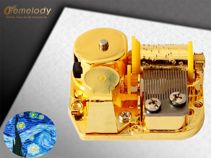 Brand Name: Femelody Category: Classic songs Model Number: FESS18 Available Melody: Starry Starry Night Material: Zinc-alloy Customized Music: Available Application: 18 note music movement Price: $1~399/pcs Unit Size: 50.5*44.5*27mm Feature: Wind up Unit Weight: 50g Lead Time: 3 weeks after we received the payment Play Power: Mainspring Sample Order: Available Packaging: 25pcs/base,400pcs/carton Place of Origin: Ningbo,China MOQ: 400pcs/tune Departure Port: Ningbo,Shanghai Music Duration: One tune of about 13~20 seconds,3 minutes power reserve Payment: T/T 100% payment in advance,Paypal