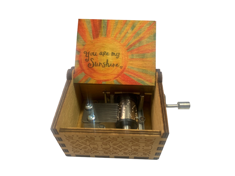 Beautiful wooden music boxes carving hand crank music box songs You Are My Sunshine