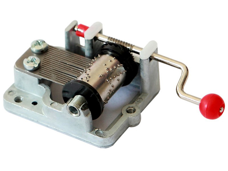 1)Mouvement musical actionné à la main par manivelle, bouton boule rouge