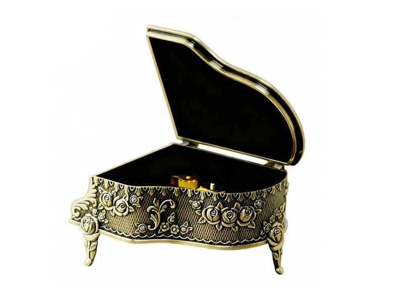This product is a music box shaped like a retro piano. It adopts an overall retro metal - textured design, with exquisite rose patterns carved on the surface. The details are full, showing elegance and romance.