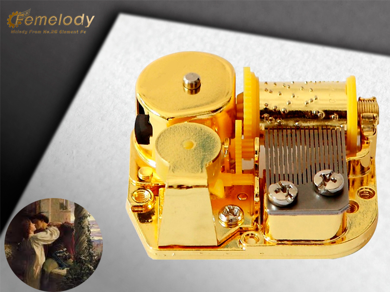 Brand Name: Femelody Category: Movie songs Model Number: FESRJ18 Available Melody: Romeo and Juliet Prokofiev Material: Zinc-alloy Customized Music: Available Application: 18 note music movement Price: $1~399/pcs Unit Size: 50.5*44.5*27mm Feature: Wind up Unit Weight: 50g Lead Time: 3 weeks after we received the payment Play Power: Mainspring Sample Order: Available Packaging: 25pcs/base,400pcs/carton Place of Origin: Ningbo,China MOQ: 400pcs/tune Departure Port: Ningbo,Shanghai Music Duration: One tune of about 13~20 seconds,3 minutes power reserve Payment: T/T 100% payment in advance,Paypal
