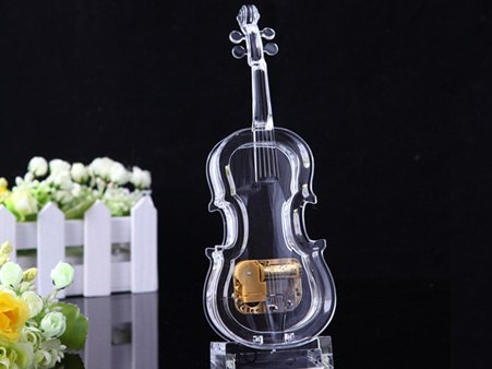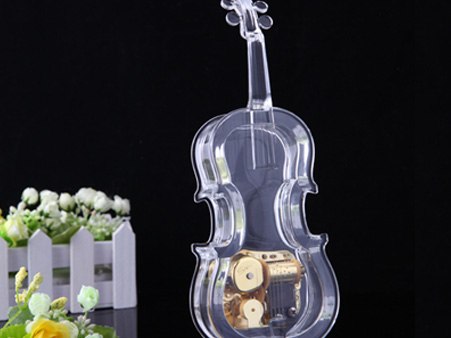 2) Componenti: custodia in acrilico trasparente, meccanismo musicale a carica