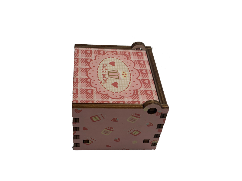 Pink Lovely Wooden Carved Music Box,A variety of vivid desserts, cakes are printed on the outside of the box.