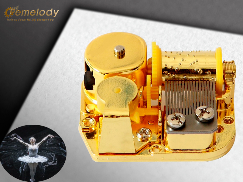 Brand Name: Femelody Category: Popular song Model Number: FESL18 Available Melody: Swan Lake Material: Zinc-alloy Customized Music: Available Application: 18 note music movement Price: $1~399/pcs Unit Size: 50.5*44.5*27mm Feature: Wind up Unit Weight: 50g Lead Time: 3 weeks after we received the payment Play Power: Mainspring Sample Order: Available Packaging: 25pcs/base,400pcs/carton Place of Origin: Ningbo,China MOQ: 400pcs/tune Departure Port: Ningbo,Shanghai Music Duration: One tune of about 13~20 seconds,3 minutes power reserve Payment: T/T 100% payment in advance,Paypal