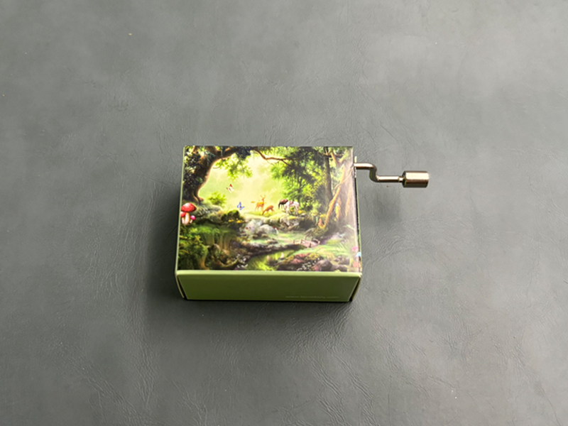 A 18 note hand crank music mechanism in side,it comes with a wooden sound reinforcement board,makes music crisp and sweet.