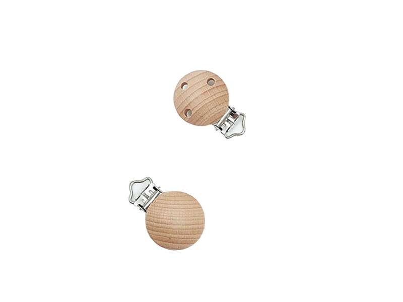 Beech Wood Baby Pacifier Holder Clips, with Iron Clips, Flat Round