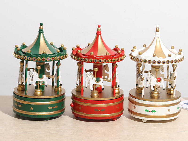 Carousel Wooden Music Box Desktop Christmas Tree Ornament